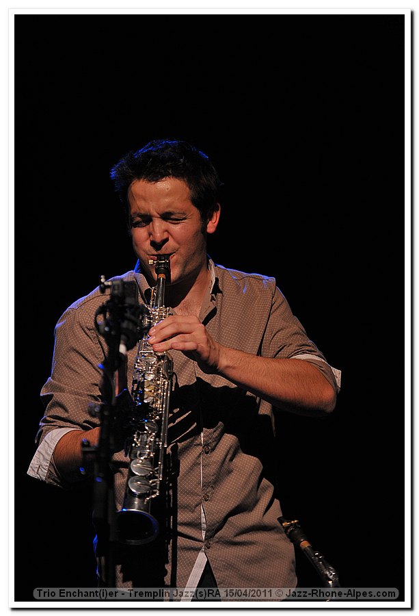 "Le Trio Enchant(i)er porte bien son nom. Gregory Sallet, Olivier Jambois et Kevin Lucchetti sont des "travailleurs enchantes" et ce n'est pas le seul point commun avec les univers de Tim Berne, Marc Ducret et Steve Coleman dont ils se sont probablement inspires (peut etre de maniere indirecte : Fabrizio Cassol, Stephane Payen, Gilles Coronado...). en tout cas sans dogmatisme, moins obnubiles par les grooves a clave que par le plaisir de glisser sur les correspondances rythmiques et de mailler l'improvisation a l'ecriture, avec un son qui leur ai propre : Sallet entre le bucolique et l'hirsute, Jambois n'oubliant pas ce qu'il a appris de Serge Lazarevitch, Lucchetti jouant d'une batterie aux tendresses vegetales. L'an passe ils ont remporte le Tremplin Rezzo a Jazz A Vienne ce qui leur vaut de publier les Composantes Invisibles chez Naive et de cloturer Jazz A Vienne ce 13 jullet au Theatre Antique ! Ils le meritent. "